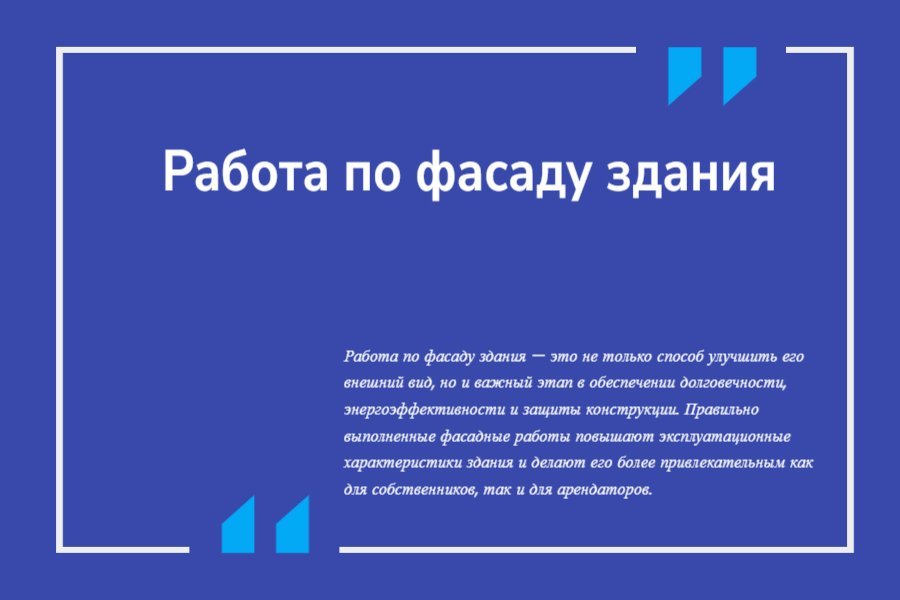 - Энергоэффективность: Работы по утеплению фасада позволяют снизить теплопотери, что значительно уменьшает затраты на отопление и кондиционирование. Это особенно важно для больших зданий, где энергосбережение может привести к существенной экономии средств.